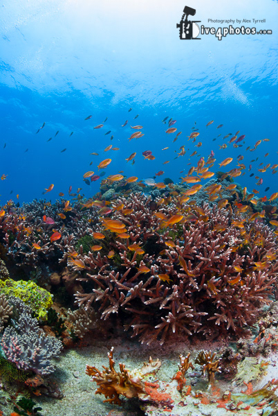 Anthias over Staghorn Corals