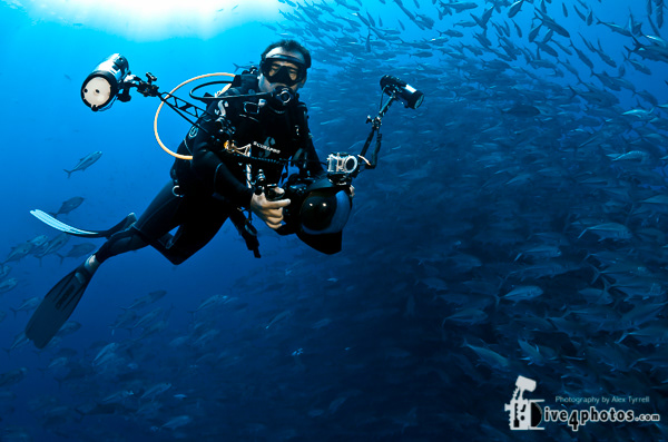 Bigeye Trevally School & Photographer (Caranx sexfasciatus)