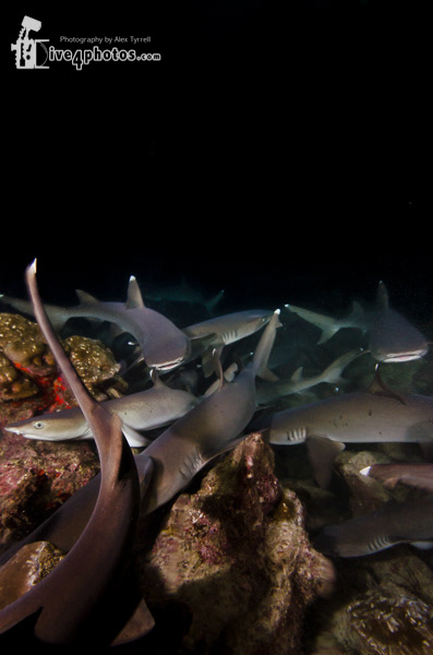 Whitetip Reef Sharks feeding frenzy (Triaenodon obesus)
